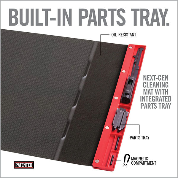 Die SMART MAT – UNIVERSAL Reinigungsmatte von REAL AVID ist eine Reinigungsmatte der nächsten Generation mit ölbeständigen und stossdämpfenden Eigenschaften. Ein magnetisches Fach sichert Mikrobauteile. Die SMART MAT mit den Abmessungen von 109 cm x 40 cm bringt die Waffenreinigung auf das nächste Level.