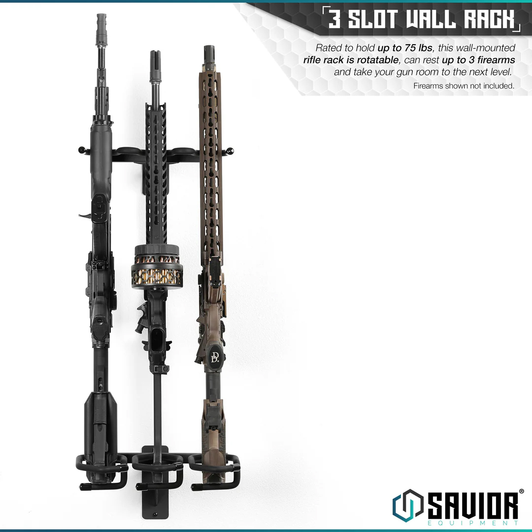 Rifle Wall Rack – 3 Slots, Black